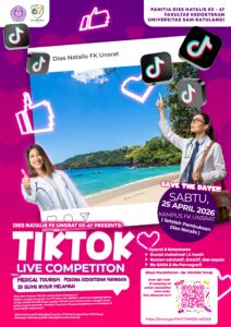 Suasana semarak dan penuh kreativitas mewarnai perayaan Dies Natalis ke-67 Fakultas Kedokteran Universitas Sam Ratulangi, khususnya melalui rangkaian kegiatan di bidang kesenian yang menjadi wadah ekspresi sivitas akademika. Beragam penampilan seni, mulai dari musik, tari, hingga pertunjukan budaya lokal, tidak hanya menjadi hiburan, tetapi juga mencerminkan semangat kebersamaan, inovasi, dan pelestarian nilai-nilai budaya di lingkungan kampus. Momentum ini sekaligus menegaskan bahwa FK UNSRAT tidak hanya unggul dalam bidang akademik dan kesehatan, tetapi juga aktif mengembangkan potensi seni sebagai bagian dari pembentukan karakter mahasiswa yang holistik.